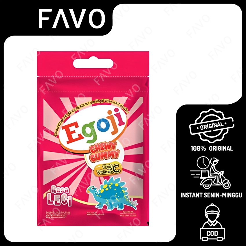 Egoji Chewy Rasa Leci - 10 Pcs adalah suplemen multivitamin plus Ekstrak Buah Goji Berry dengan bentuk gummy dinosaurus. Komposisi lengkap Vitamin A, B kompleks, C, D, dan E, serta Zinc untuk memenuhi kebutuhan nutrisi di masa pertumbuhan. Rasa Lecinya enak yang pasti disukai anak-anak. Mengandung pemanis gula dan sari buah alami yang tidak merusak gigi. Kemasannya praktis.