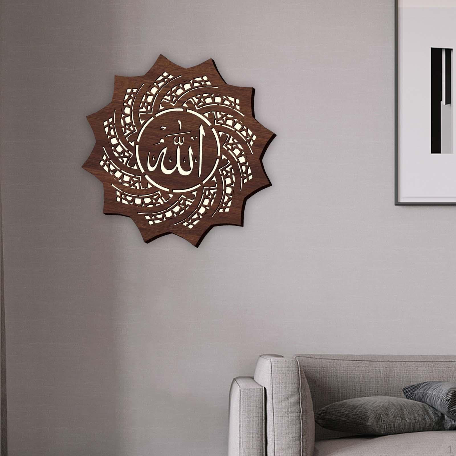 Eid Decor Night Light Подвесной Орнамент Элегантный Прочный Деревянный DIY Знак Для Крыльца B