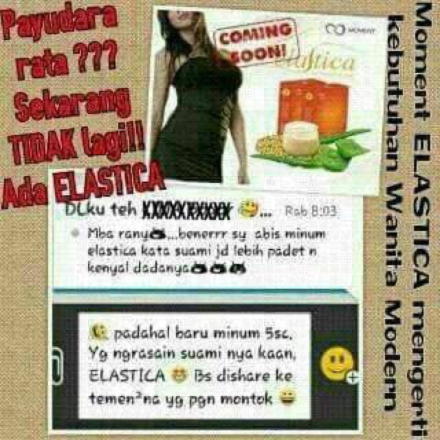 Dengan rajin mengkonsumsi Moment Elastica, maka bentuk payudara yang indah, proporsional dan seksi bukan hanya impian lagi. Selain itu, berbagai masalah pada payudara Anda pun bisa teratasi secara tuntas.