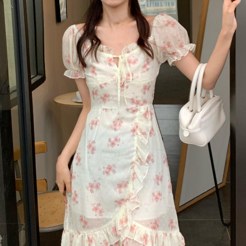 Elegnat мини цельное платье в Корейском стиле повседневное 2023 летнее короткое вечернее платье с цветочным принтом феи пляжное ретро платье с короткими рукавами женское