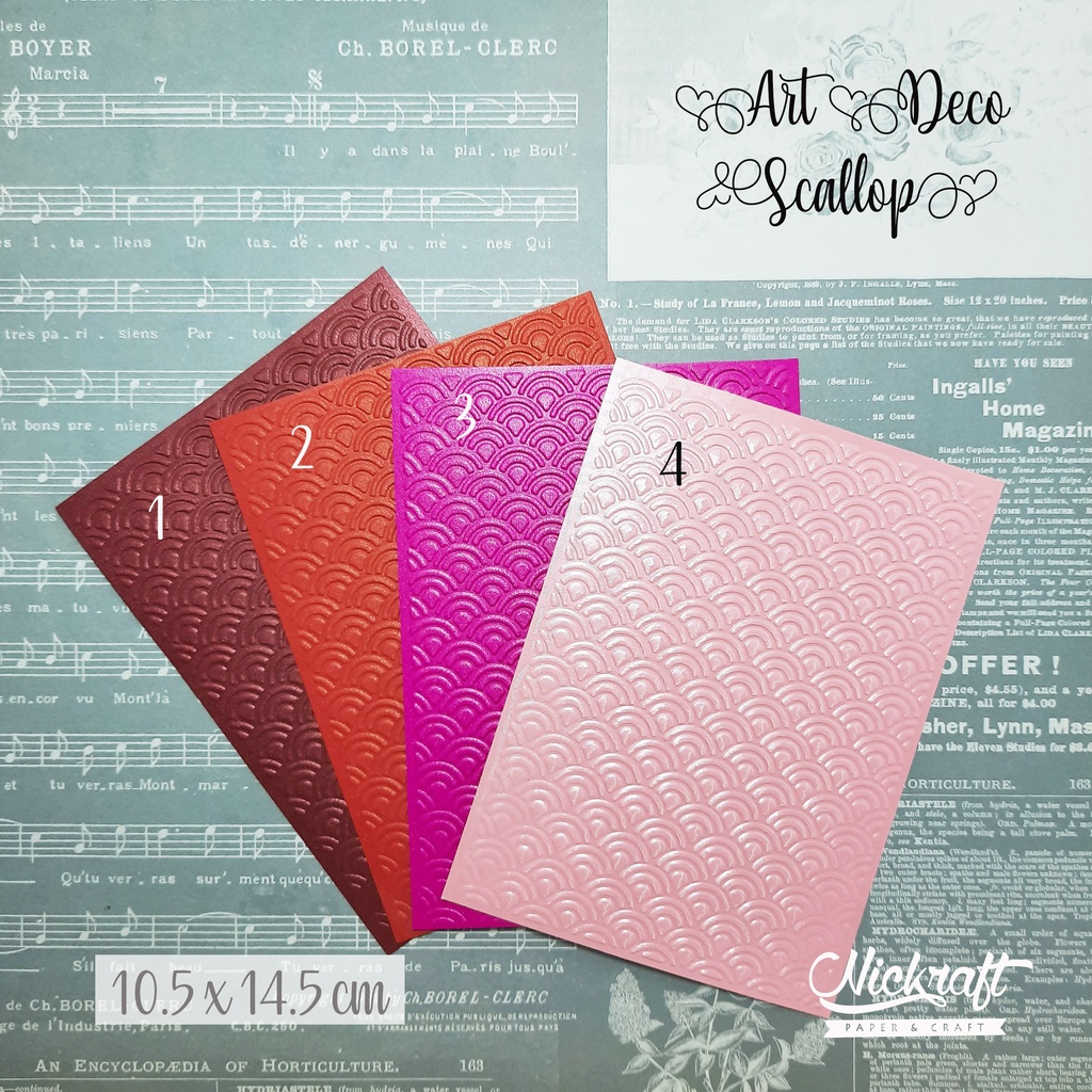 Kertas dengan motif timbul yang dapat digunakan untuk membuat kartu, scrap, maupun prakarya kertas lainnya.