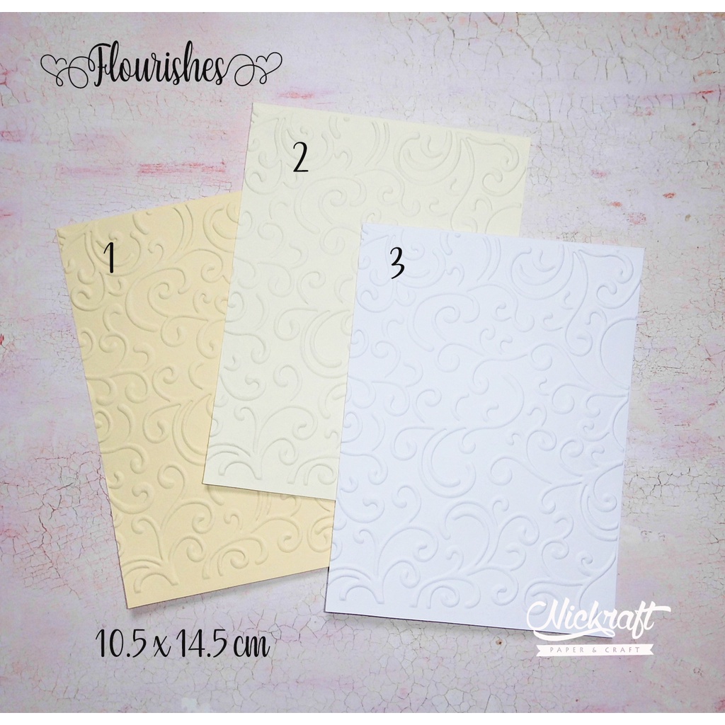 Kertas dengan motif timbul yang dapat digunakan untuk membuat kartu, scrap, maupun prakarya kertas lainnya.