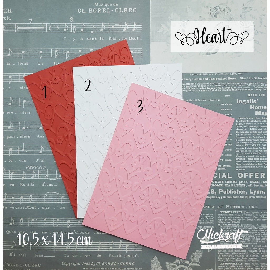Kertas dengan motif timbul yang dapat digunakan untuk membuat kartu, scrap, maupun prakarya kertas lainnya.