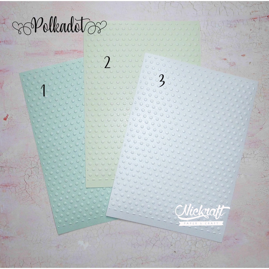 Kertas dengan motif timbul yang dapat digunakan untuk membuat kartu, scrap, maupun prakarya kertas lainnya.