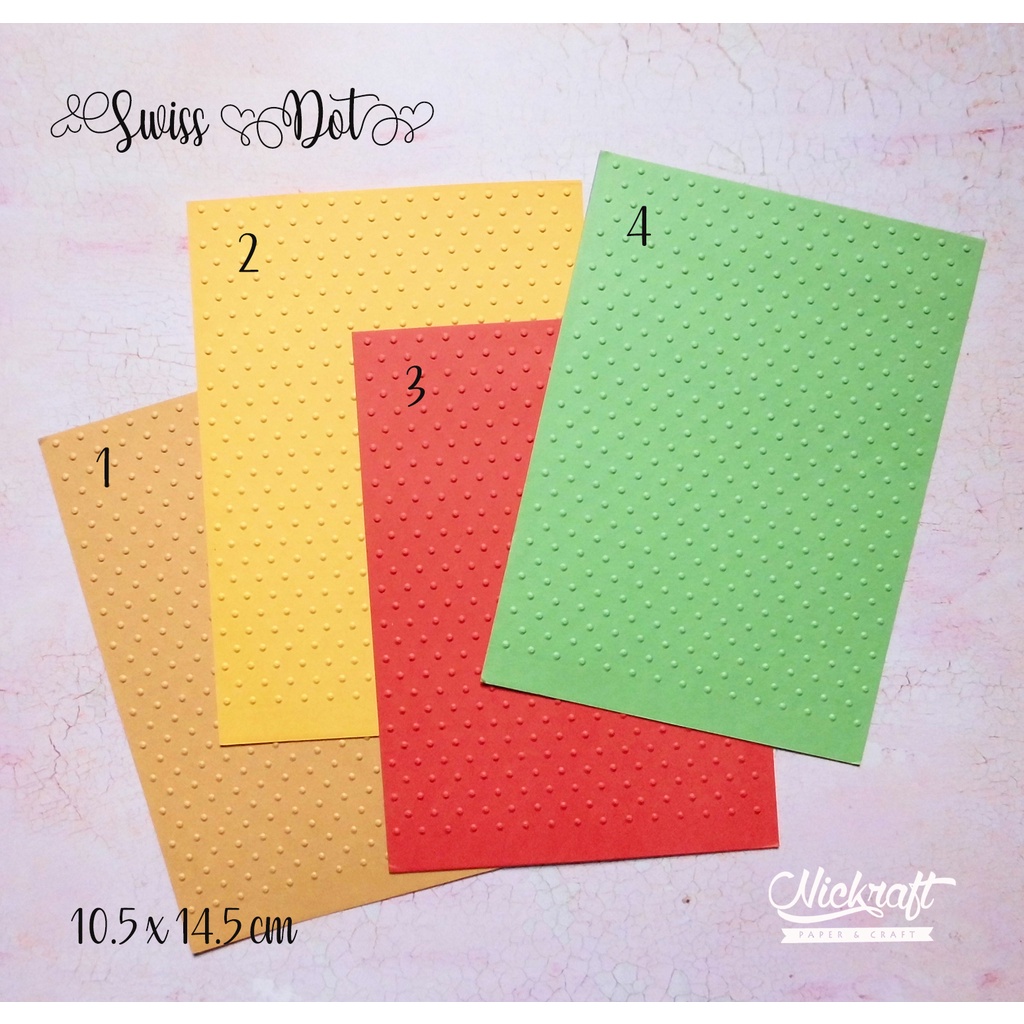Kertas dengan motif timbul yang dapat digunakan untuk membuat kartu, scrap, maupun prakarya kertas lainnya.