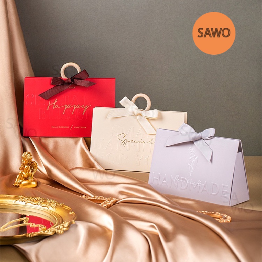 Embossed Paper Hand bag with Ribbon