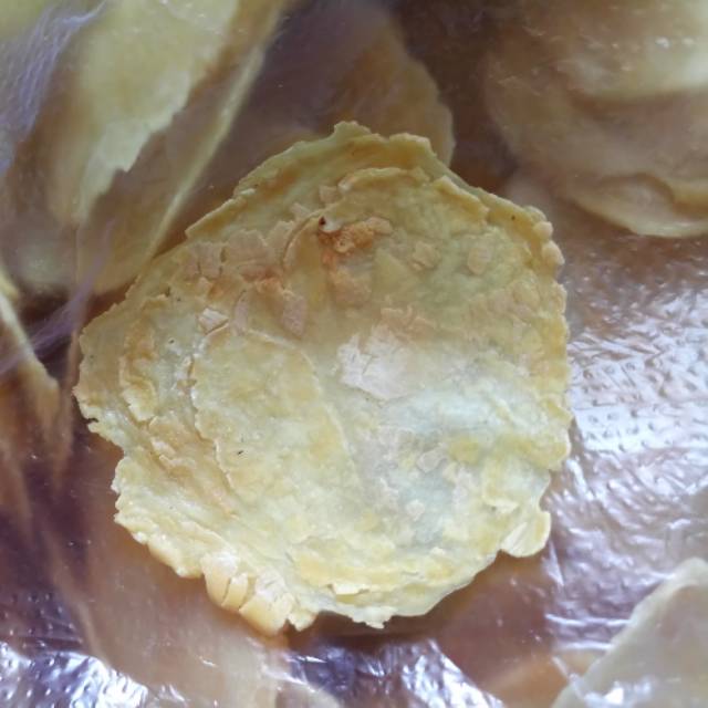 Emping yang dibuat dari 2-3 melinjo yang dipipihkan.