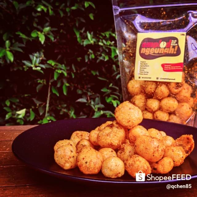 Cemilan dari singkong plus tepung tapioka ,rasa gurih dan kriuk .berat 150 gr ,rasa pedas basah dengan aroma daun jeruk yang bikin nagih.