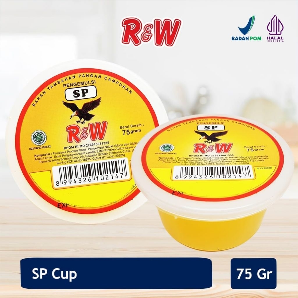 Emulsifier SP Ovalet TBM Rajawali R&W RW digunakan sebagai cake emulsifier yang menjadikan adonan homogen dan tidak mudah turun saat dikocok.