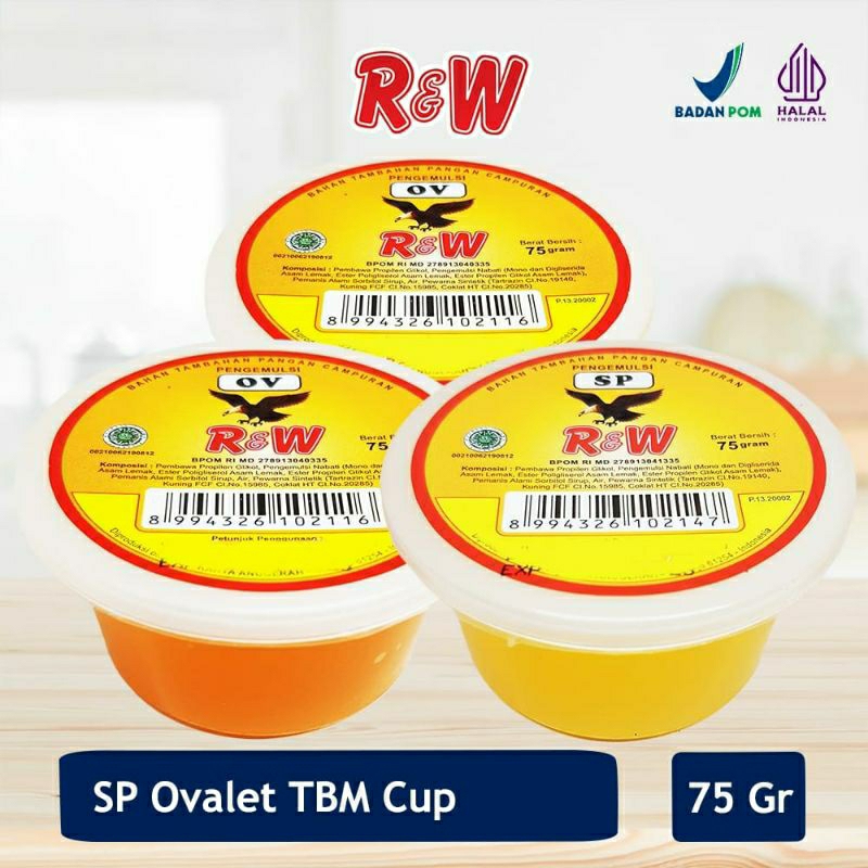 Emulsifier SP Ovalet TBM Rajawali R&W RW digunakan sebagai cake emulsifier yang menjadikan adonan homogen dan tidak mudah turun saat dikocok.