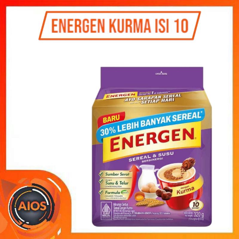 Energen Cereal Instant Rasa Kurma - Minuman Sereal Kaya Energi dengan Rasa Kurma yang Lezat! Dapatkan energi tambahan dengan minuman sereal Energen yang kaya akan vitamin dan mineral. Rasa kurma yang manis dan lezat membuat minuman ini cocok untuk diminum setiap saat. Dengan kandungan susu dan sereal, Energen Cereal Instant Rasa Kurma dapat membantu meningkatkan energi dan daya tahan tubuh.