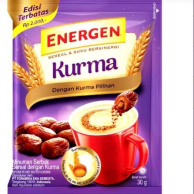 Energen rasa kurma edisi terbatas dengan harga per bungkus.