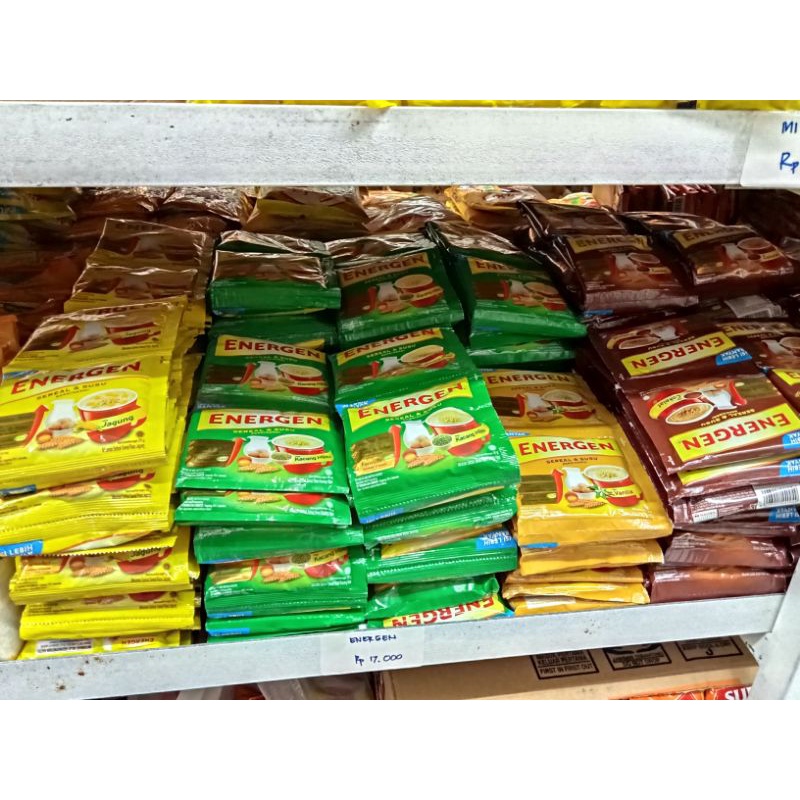 Energen Renceng rasa Coklat, vanilla, jagung, kacang hijau, dan kurma