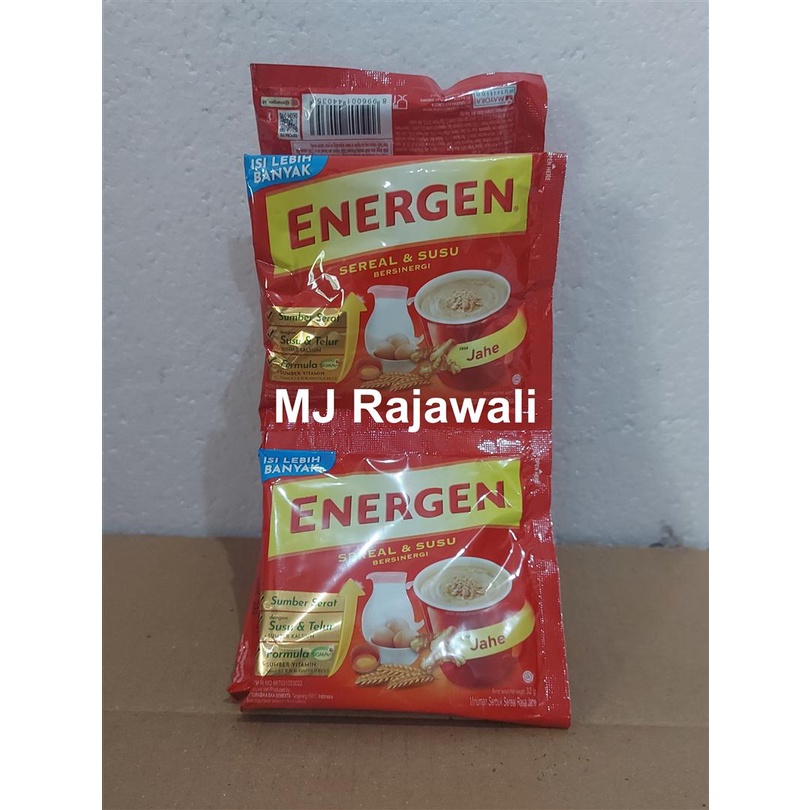 Energen sereal dan susu rasa jahe 32 gram. Harga per renceng. 1 renceng isi 10 bungkus. Expired masih lama.