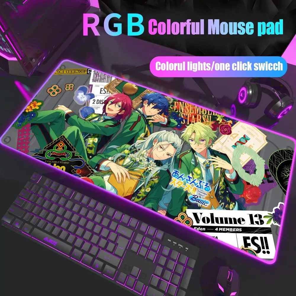 Ensemble Stars Mouse Pad Gamer Rgb Desk Mat Back Light Led Mousepad Setup Gaming Accessories Deskmat Big Mousepad Backlight