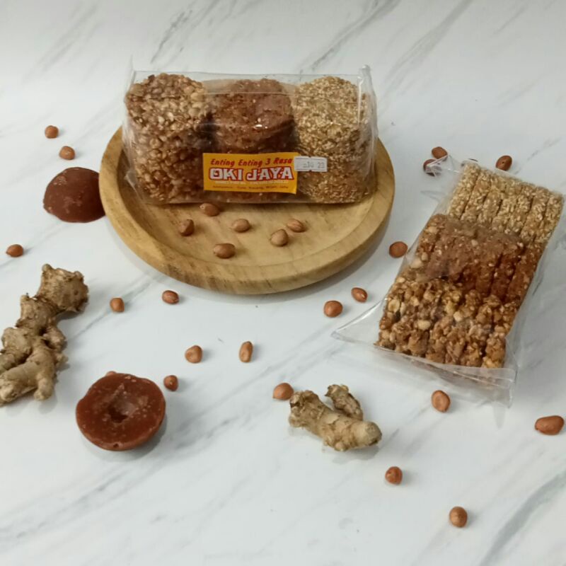 Enting-enting jahe dibuat dengan dari jahe diparut ditambah parutan kelapa dan gula jawa kemudian diolah, dipres atau digiles/diplethes menjadi makanan enting-enting jahe. Enting-enting Jahe mempunyai rasa yang khas yaitu campuran antara pedasnya jahe dan manis sangat cocok untuk cemilan anda di siang maupun malam hari. Selain rasa manis dan pedas jahe biasanya ditambahkan dengan kacang tanah atau wijen untuk menambah rasa gurihnya.