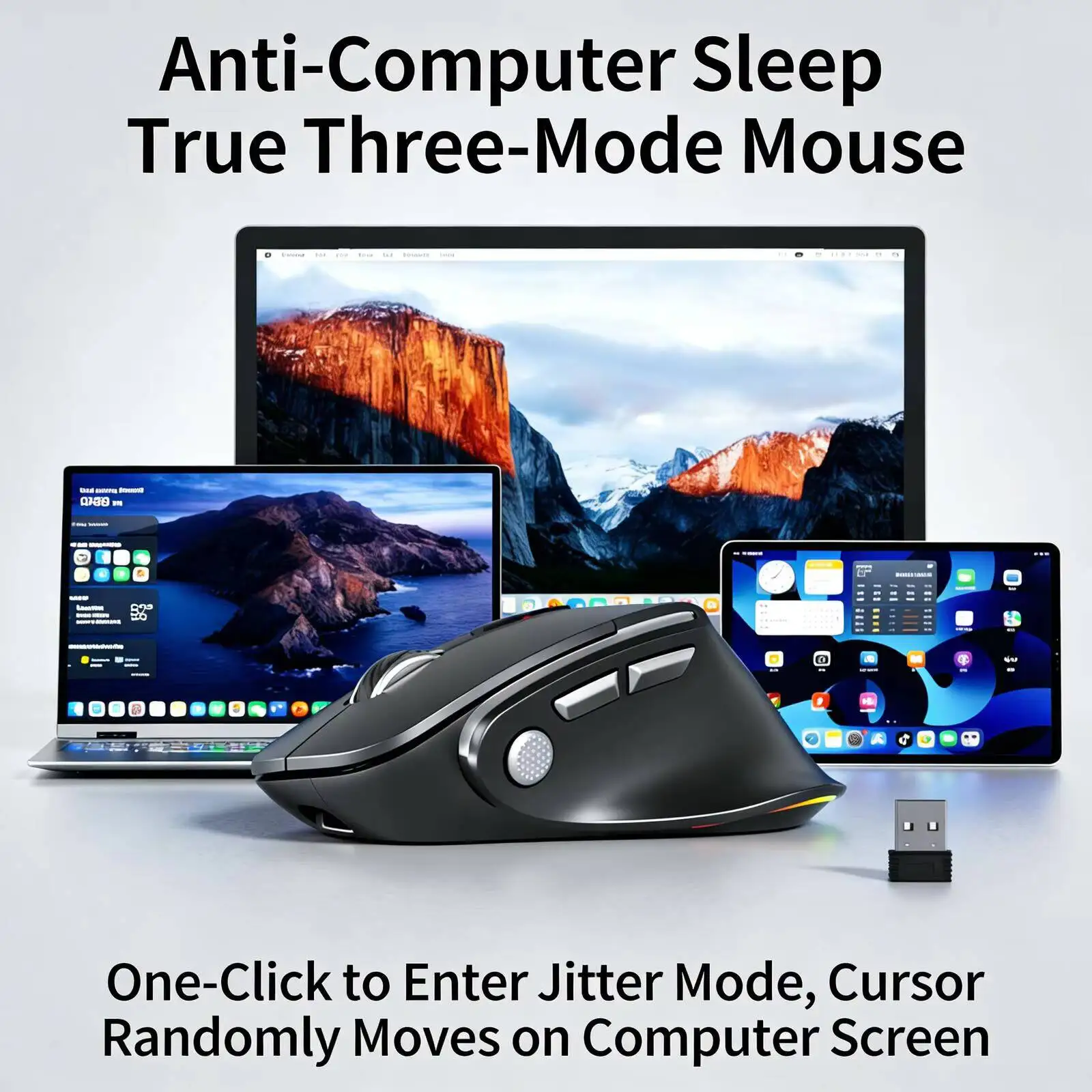 Ergonomic Tri-mode Mouse Wired 2.4G Bluetooth Rechargeable RGB Backlight Keep PC Awake Mice For Laptop Tablet Computer Office