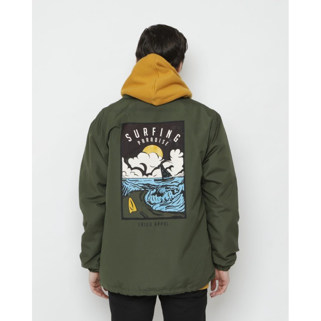 Coach Jacket Erigo saat ini merupakan salah satu lini pakaian terbaik dan berkualitas tinggi di antara Local Brand Indonesia. Jaket berkerah dengan kancing jepret, saku fungsional, dan karet pada ujung lengan. Coach Jacket Erigo memiliki printed design yang unik pada bagian lengan dan punggung, dengan warna memukau siap menjadikanmu penuh semangat!Untuk Model Pria: Tinggi 185-186 cm, Berat 75 kg, Menggunakan Ukuran XLUntuk Model Wanita: Tinggi 168-170 cm, Berat 55 kg, Menggunakan Ukuran MBahan : Soft ParasutDetail Ukuran:S : Lebar Pundak: 46 cm - Panjang Jaket: 70,5 cmM : Lebar Pundak: 47,5 cm - Panjang Jaket: 72 cmL : Lebar Pundak: 48 cm - Panjang Jaket: 73,5 cmXL : Lebar Pundak: 50 cm - Panjang Jaket: 74 cmXXL : Lebar Pundak: 51 cm - Panjang Jaket: 76 cm---------------------------------------------------------------------------------------------------------------------------Erigo's Coach Jacket now is one of the best clothing line and has the highest quality in Indonesia Local Brand. Collared jacket with snap-button, functional pockets, and rubber on the sleeve cuffs. Erigo Coach Jacket has a unique printed design at the sleeves and back, with stunning color ready to bring you on fire!For Man Model: Height 185-186 cm, Weight 75 kg, Size XLFor Woman Model: Height 168-170 cm, Weight 55 kg, Size MMaterial: Soft ParachuteSize Details:S: Shoulder Width: 46 cm - Jacket Length: 70,5 cmM: Shoulder Width: 47,5 cm - Jacket Length: 72 cmL: Shoulder Width: 48 cm - Jacket Length: 73,5 cmXL: Shoulder Width: 50 cm - Jacket Length: 74 cmXXL: Shoulder Width: 51 cm - Jacket Length: 76 cm