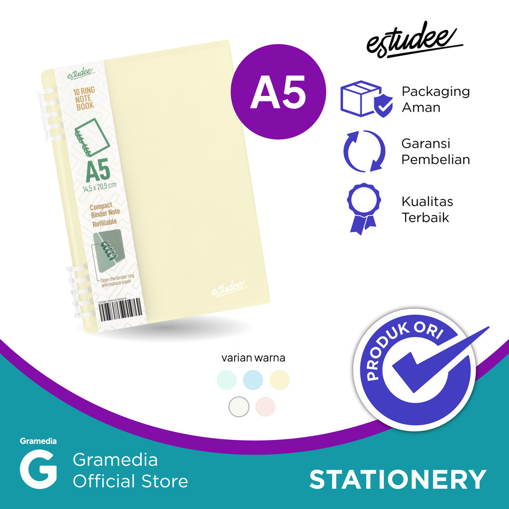 Hi Teman Estudee! ESTUDEE 10RING NOTEBOOK A5 Notebook Ring Ukuran A5 terbuat dari bahan plastik PP yang ramah lingkungan, dilengkapi dengan ring berbahan metal yang kuat, cocok digunakan untuk kertas loose leaf ukuran A5, dan dapat digunakan untuk keperluan sekolah, kantor, serta menulis catatan. #Estudee #StudiYaEstudee