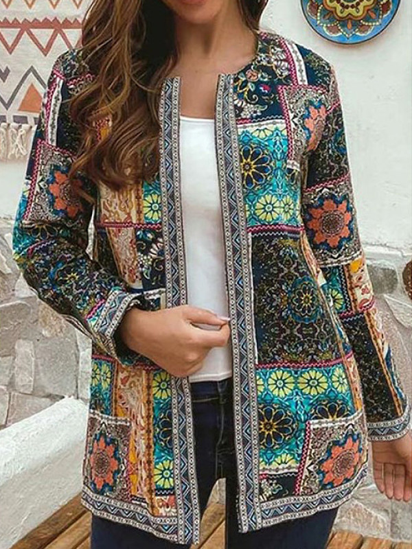 Ethnic Style Cotton And Linen Printed Long-sleeved Jacket