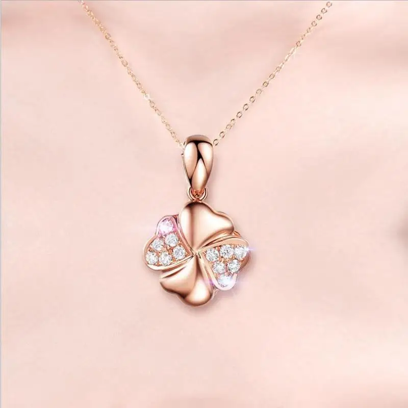 Everoyal, Трендовое женское серебряное ожерелье с цепочкой 925 пробы, аксессуары для девочек, роскошное циркониевое ожерелье с золотым клевером, ...