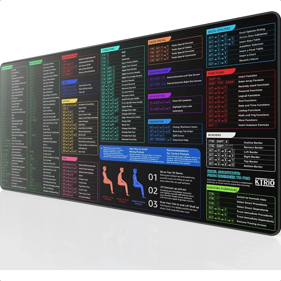 Excel Shortcuts Mousepad with erior MicroWeave Cloth Extended Mousepad with Stitched Edges NonSlip Base Water Resist Keyboard P