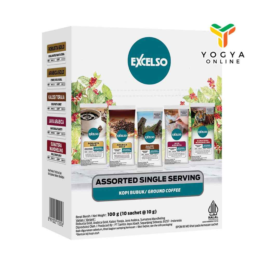 Excelso Assorted Single Serving 10x10g adalah paket kopi premium dalam bentuk drip bag yang menghadirkan berbagai varian rasa dalam satu kemasan. Dibuat dari biji kopi berkualitas tinggi, produk ini memungkinkan Anda menikmati kopi segar dengan metode penyeduhan praktis tanpa mesin.