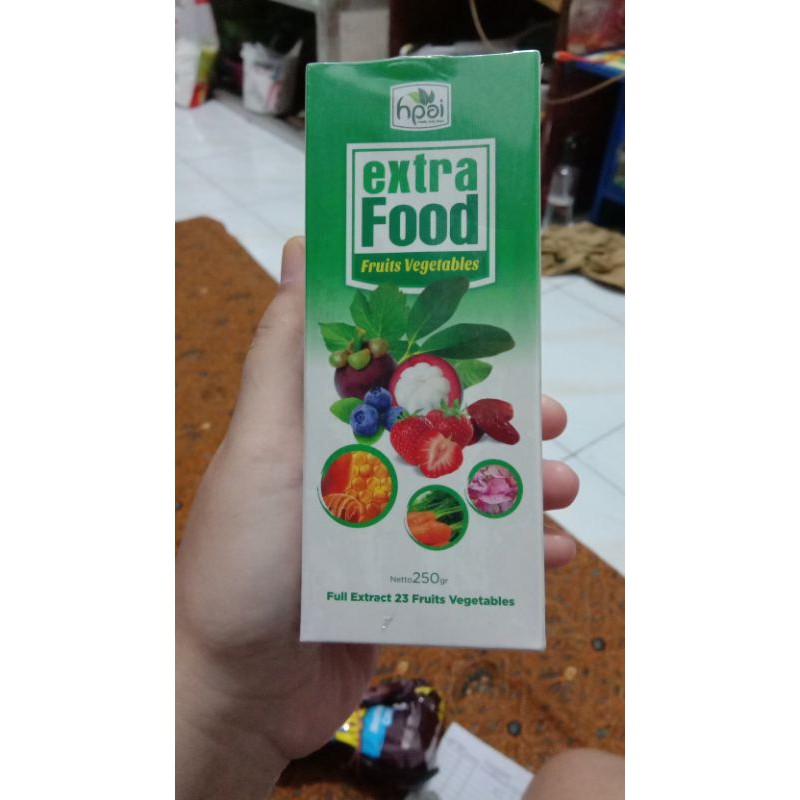 Extra Food suplemen kesehatan alami yang dibuat dari sinergi 23 herbal yang kaya akan antioksidan & serat alami. Mengkonsumsi Extra Food memberikan perlindungan Anda dan keluarga dari radikal bebas.