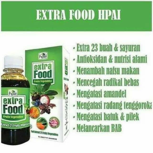 Extra Food suplemen kesehatan alami yang di buat dari sinergi 23 herbal yang kaya akan antioksidan & serat alami. Mengkonsumsi Extra Food memberikan perlindungan anda dan keluarga dari radikal bebas.