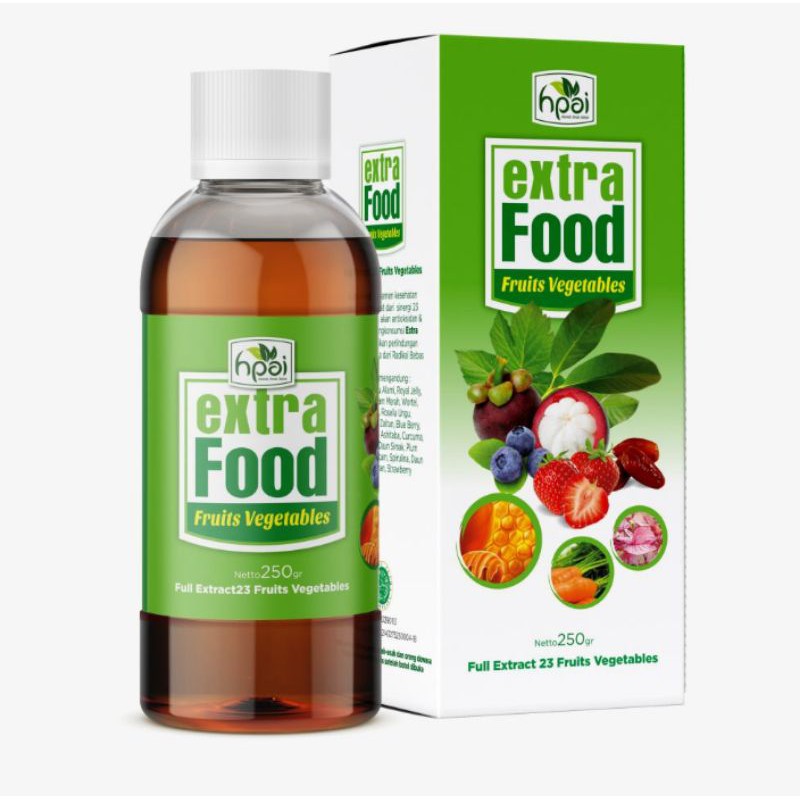 EXTRA FOOD, adalah makanan kesehatan alami yang dibuat dari sinergi 23 herbal buah-buahan dan sayuran yang kaya akan antioksidan dan serat alami.