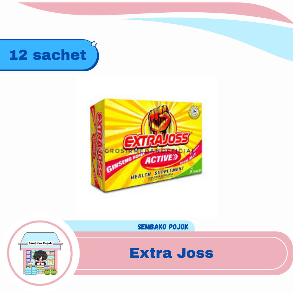 Extra Joss adalah suplemen kesehatan berupa serbuk minuman yang kaya akan Vitamin B, royal jelly, ginseng, dan kafein. Dengan sensasi yang menyegarkan, Extra Joss dapat membantu Anda untuk tetap aktif dan produktif, serta menjaga stamina Anda agar tetap prima. Extra Joss juga dapat dikonsumsi tiga kali sehari, baik sebelum maupun setelah beraktivitas.