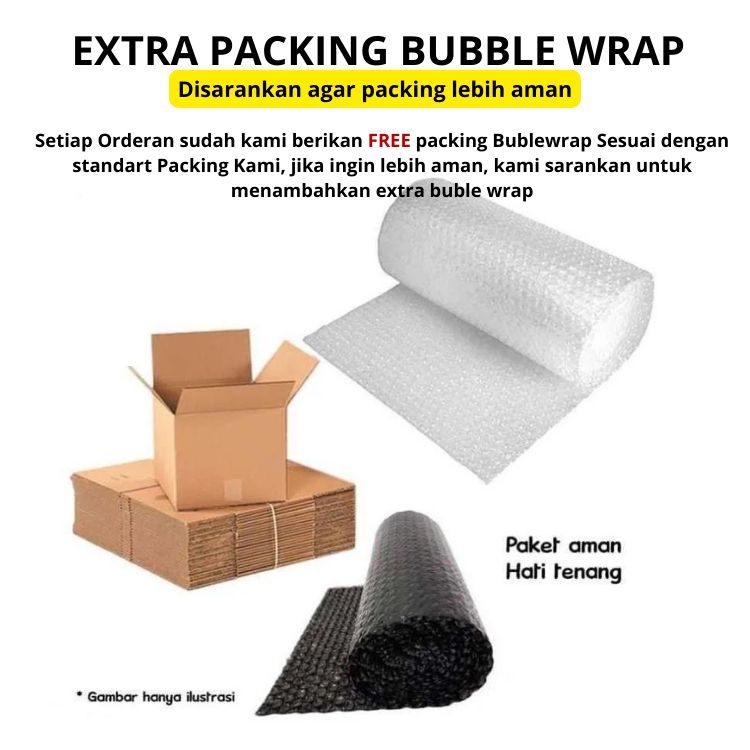 Setiap Orderan sudah kami berikan FREE packing Bublewrap Sesuai dengan standart Packing Kami, jika ingin lebih aman, kami sarankan untuk menambahkan extra buble wrap