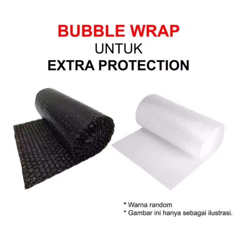 Tambahan extra bubble wrap untuk membungkus sekaligus melindungi barang kiriman dari benturan dan tekanan agar tidak rusak selama perjalanan ( meminimalisir kerusakan paket ) khususnya untuk pembeli diluar jakarta