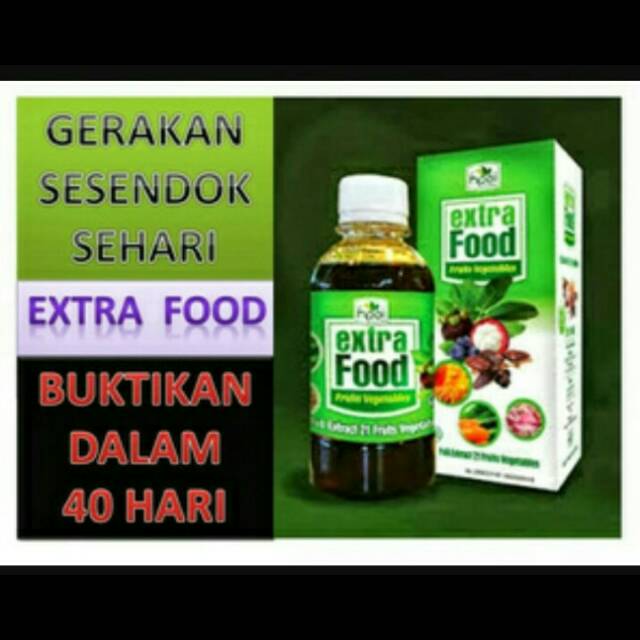 Extra Food HPAI, adalah makanan kesehatan alami yang dibuat dari sinergi 23 herbal buah-buahan dan sayuran yang kaya akan antioksidan & serat alami. Extra Food HPAI diformulasikan sebagai makanan suplemen herba yang berkhasiat untuk mengatasi berbagai penyakit dan bermanfaat bagi kesehatan tubuh. Dengan mengkonsumsi Extra Food HPAI ini akan memberikan perlindungan Anda dan keluarga dari RADIKAL BEBAS.