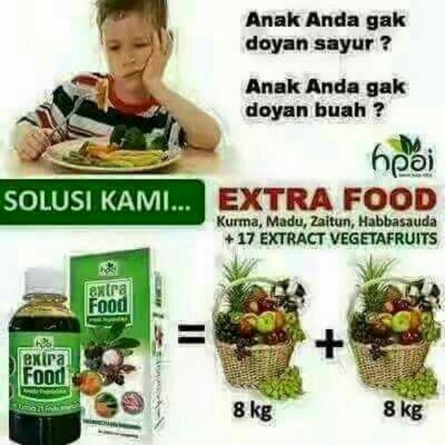 EXTRA FOOD diformulasikan sebagai makanan suplemen herba yang berkhasiat untuk mengatasi berbagai penyakit dan bermanfaat bagi kesehatan tubuh. Dengan mengkonsumsi EXTRA FOOD ini akan memberikan perlindungan Anda dan keluarga dari radikal bebas.