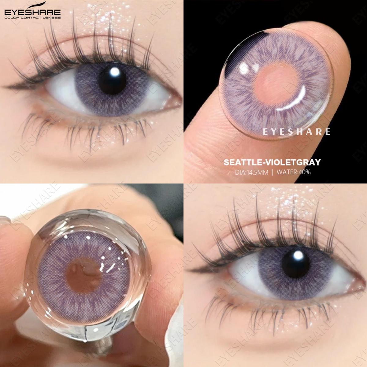 Eyeshare Цветные контактные линзы Новые светло-коричневые натуральные контактные линзы Розовые кофейные цветные контактные линзы Фиолетово-серые линзы 1 пара