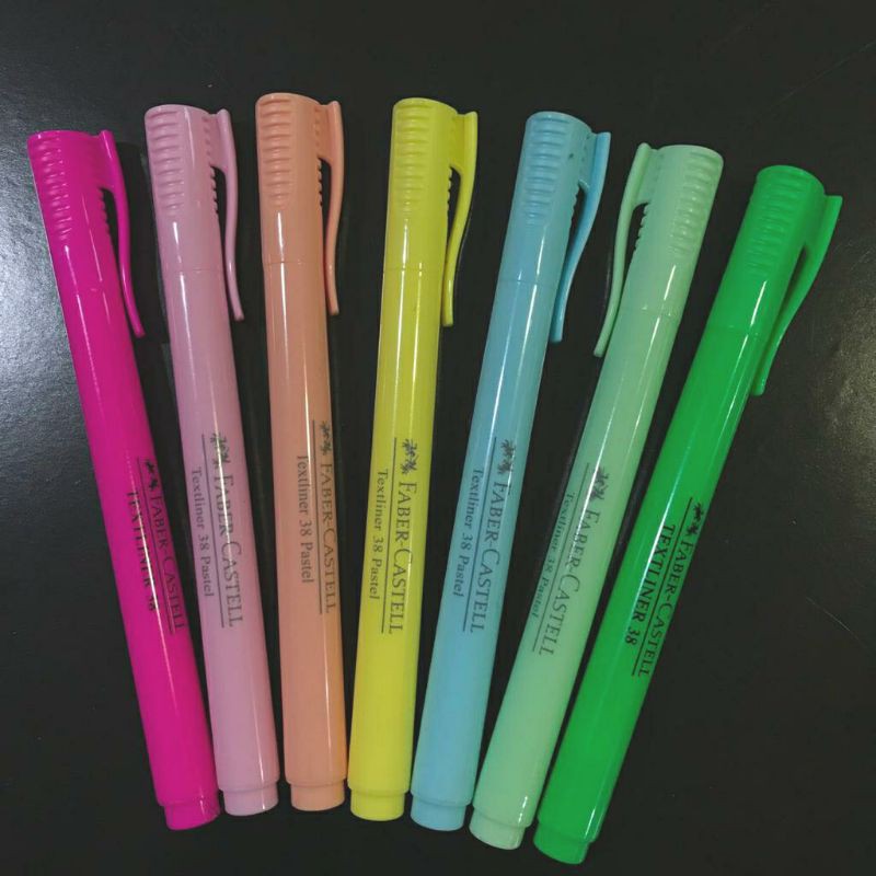 Faber-Castell textliner 38 pastel isi tinta pink tua, pink muda, orens, kuning, biru, hijau muda, hijau tua