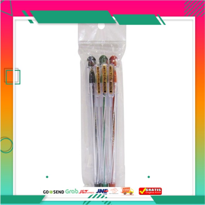 Faster C600 kemasan praktis terdapat 3 Pulpen dengan kualitas premium nyaman saat digunakan untuk menulis dan tidak mudah bocor.