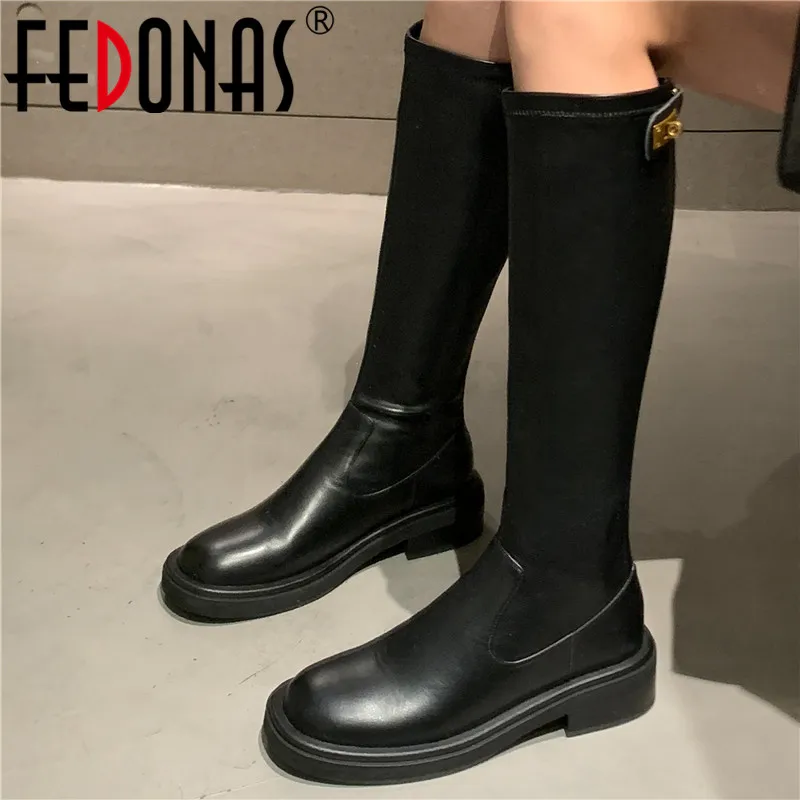 FEDONAS/выразительные эластичные сапоги; Сезон осень-зима; Женские сапоги до колена; Женская рабочая обувь для зрелых женщин; Коллекция 2022 года;...