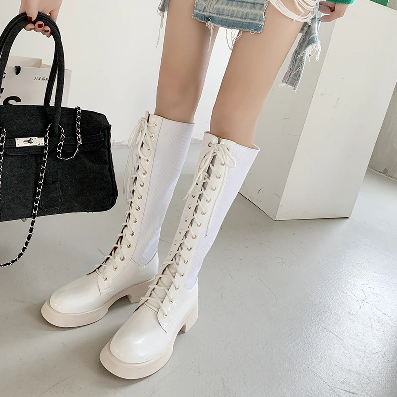 FEDONAS/осенне-зимние женские сапоги до колена; Популярная модная обувь на платформе; Женские мотоциклетные сапоги из натуральной кожи с перек...