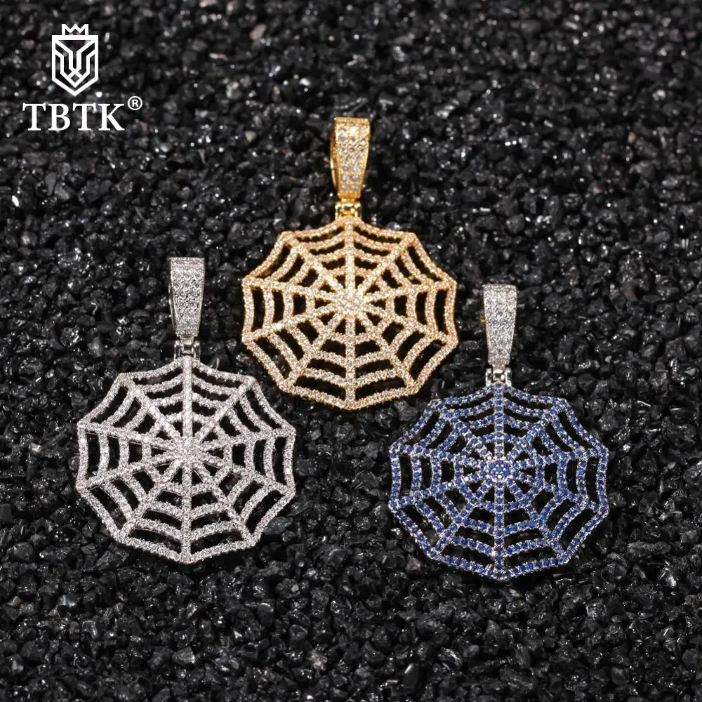TBTK Iced Out Bling AAA Cubic Zirconia Spider Web Pendants Chain Necklace For Men Trendy Charm Hiphop Rapper Jewelry