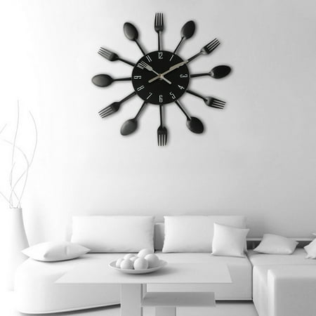Fjofpr home decor Modern Design Sliver Cutlery Kitchen Utensil Wall Clock Spoon Fork Clock
