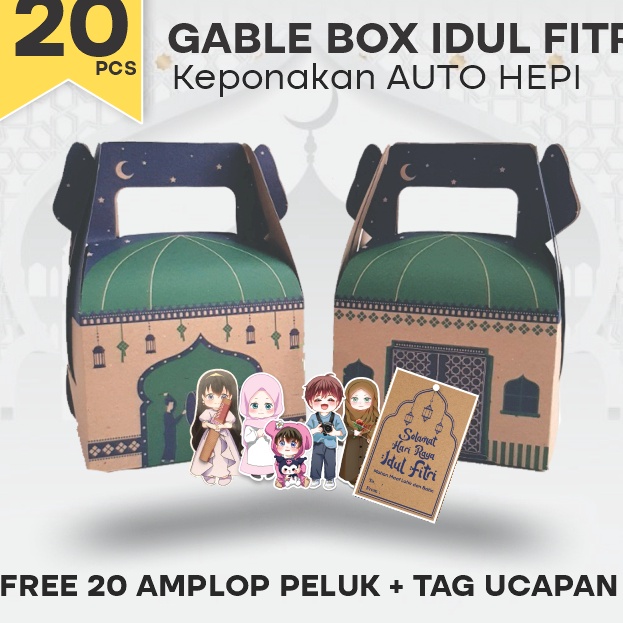 230724 | SP **Setiap Pembeliannya Sudah mendapatkan FREE AMPLOP PELUK DAN KARTU UCAPAN Idup Fitri. . GABLE BOX HAMPERS merupakan Mini Box hampers lebaran, cocok banget buat kotak BOX THR ponakan-ponakan. Selain sebagai BOX THR keponakan bisa juga untuk hampers box Puding, cookies, jar, minuman kaleng, mug, dll.. . Mini Box hampers lebaran, cocok banget nich buat THR ponakan-ponakan . Spesifikasi Produk : Isi Paket : 20pcs Gable Box + 20pcs Amplop Peluk + 20pcs Hangtag Ucapan idul fitri Bahan : Kraft 300 gsm Ukuran : P 14cm L10cm T 10cm Desain : Sisi depan dan belakang memiliki design berbeda. Cocok untuk : Puding, cookies, jar, minuman kaleng, mug, dll. TAGS : Gable Box, Lebaran, Parcel, Hampers, Idul Fitri, PELAYAN DAN KUALITAS : ✅ Kami selalu menggunakan bahan pilihan yang berkualitas dan terbaik, sehingga customer nyaman untuk menggunakan produk dari KAMI. ✅ Memberikan pelayanan yang baik, cepat, dan ramah, serta bertanggung jawab terhadap seluruh paket pelanggan ✅ Begaransi apabila barang yang diterima tidak sesuai atau cacat ✅ 100% PRODUK ORIGINAL ✅ BEST PRICE & GOOD QUALITY ✅ FOTO REAL PICT DARI TOKO KAMI ✅ JANGAN LUPA BERIKAN PENILAIAN DAN BINTANG 5NYA YA ⭐⭐⭐⭐ GARANSI : ✅ Tidak perlu khawatir, kami berikan GARANSI RETUR BARANG tapi berlaku untuk tidak selesaikan pesanan dan tidak memberikan rating/penilain jelek. ✅ Silahkan LANGSUNG CHAT SEBELUM MEMBERIKAN RATING dan REVIEW ✅ Kami akan melayani Anda dengan senang hati. INFORMASI TOKO : ✅ Pengiriman Senin - Sabtu ✅ Minggu admin Libur tp masih bs order seperti biasa ✅ Jam Kerja Admin 08.00-18.00WIB ✅ Fast Respond di jam kerja ✅ Pesanan masuk lebih dari jam 16.00 akan diproses hari berikutnya ✅ Silahkan kirim pesan jika ada hal yang ingin ditanyakan mengenia produk, warna, maupun stock ✅ Jangan lupa follow dan like produk untuk mempermudah dalam pencarian produk dan produk terbaru setiap kami upload NOTE: ✅ wajib untuk menyertakan bukti berupa foto ataupun video saat unboxing paket. Tanpa bukti kami tidak terima alasan komplain atau returan apapun. ~~>>>> Kepuasan pelanggan adalah tujuan utama kami >>>>> Terima Kasih Atas Kunjungan Anda RESELLER & DROPSHIPER WELCOME