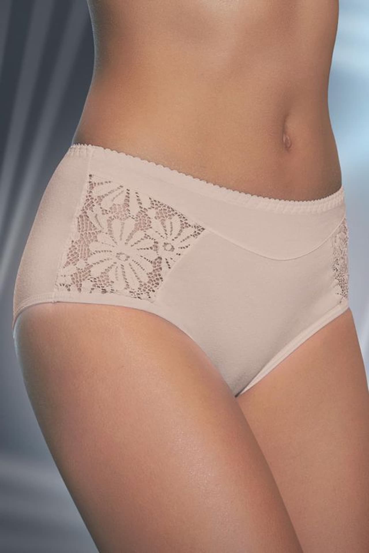 Klasyczne, komfortowe figi damskie o pełnym kroju. Figi wykonane z najwyższej jakości bawełnianej dzianiny, koronkowe wstawki dodają im dodatkowego uroku.