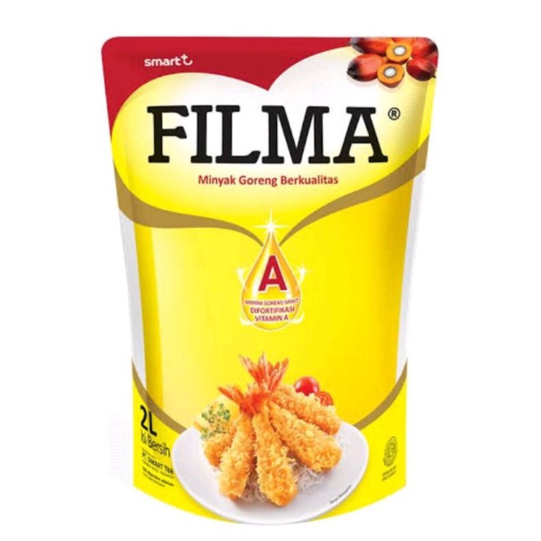 Minyak goreng filma.Kemasan 2 liter. Jernih, non colestrol. Kemasan pouch.