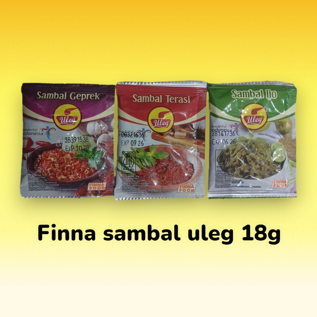 Finna Sambal Uleg adalah berbagai jenis sambal uleg yang diproduksi oleh Finna Food. Sambal ini dibuat dengan bahan-bahan pilihan seperti cabai segar, terasi, dan bumbu berkualitas lainnya, yang diolah secara higienis. Finna menawarkan berbagai varian sambal uleg, termasuk Sambal Uleg Terasi, Sambal Uleg Bawang, Sambal Uleg Rawit, dan Sambal Uleg Ijo. Sambal ini cocok digunakan sebagai pendamping berbagai macam makanan atau sebagai bahan tambahan dalam masakan.
