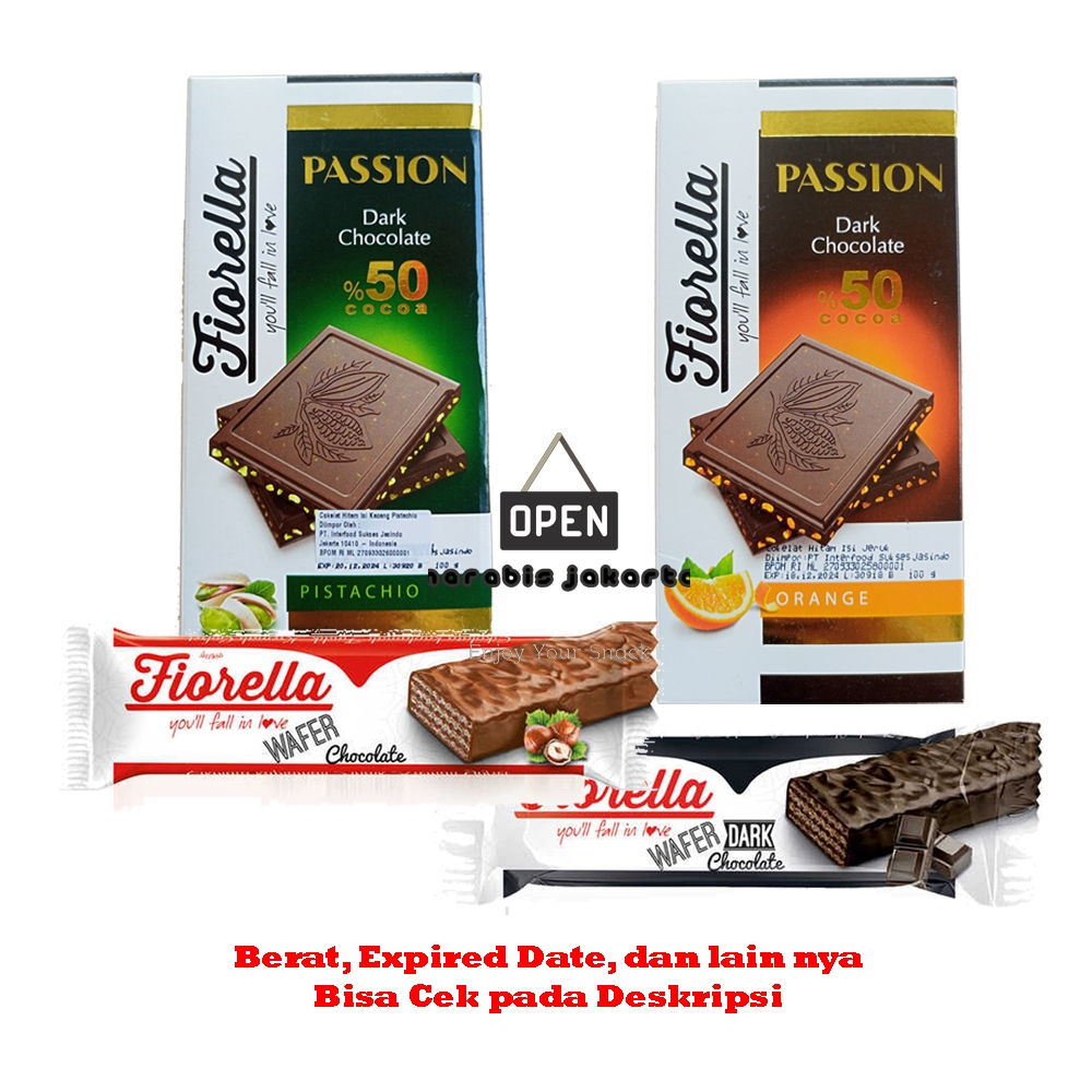 Fiorella Bar : Dark Cokelat Batang dengan 2 Rasa : Orange dan Pistachio