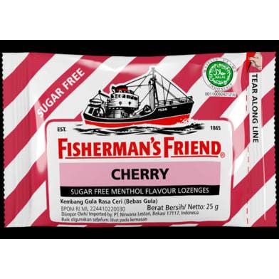 Fisherman's Friend Sugar Free Cherry merupakan permen pelega tenggorokan yang memiliki rasa cherry tanpa kandungan gula untuk melegakan tenggorokan, hdung tersumbat, dan memberi kesegaran di mulut.