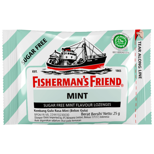 Fisherman's Friend Sugar Free Mint merupakan permen bebas gula dengan rasa mint, memiliki sensasi yang menyegarkan dan aman bagi gigi. Berfungsi untuk melegakan tenggorokan, hdung tersumbat, dan memberi kesegaran di mulut.