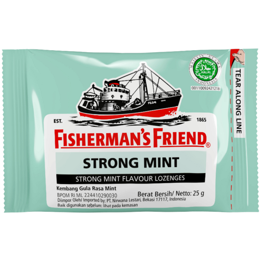 Fisherman's Friend Strong Mint merupakan permen pelega tenggorokan yang memiliki rasa mint untuk melegakan tenggorokan, hdung tersumbat, dan memberi kesegaran di mulut.